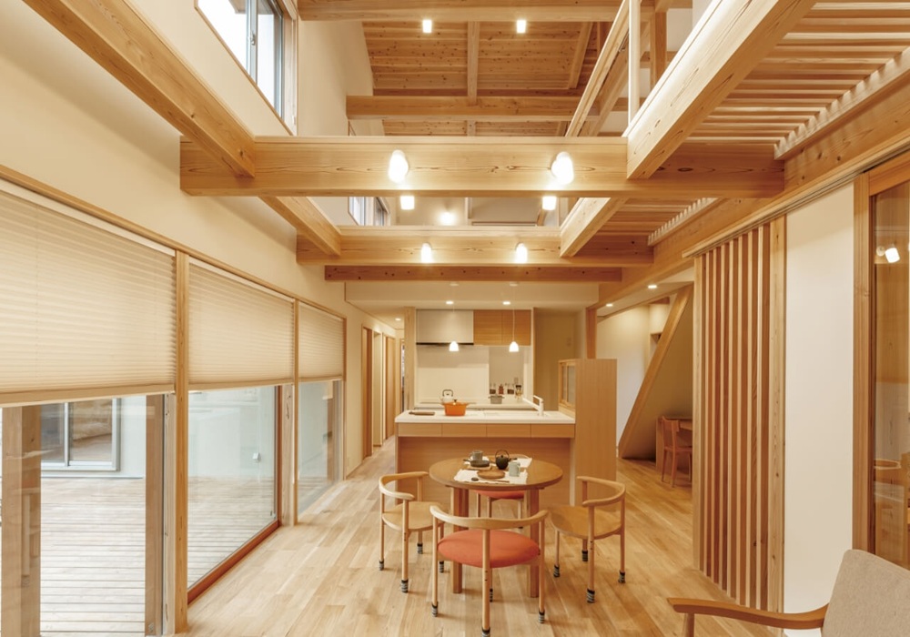 地域産の無垢材を厳選し、構造材から内装材まで国産木材を積極的に使用。
