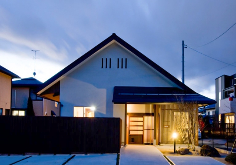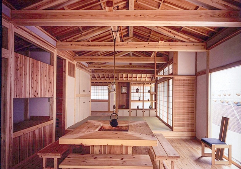 I邸は古民家を移築して再生した住宅で、木造在来工法により元の趣を保ちながら現代の暮らしに応える設計。