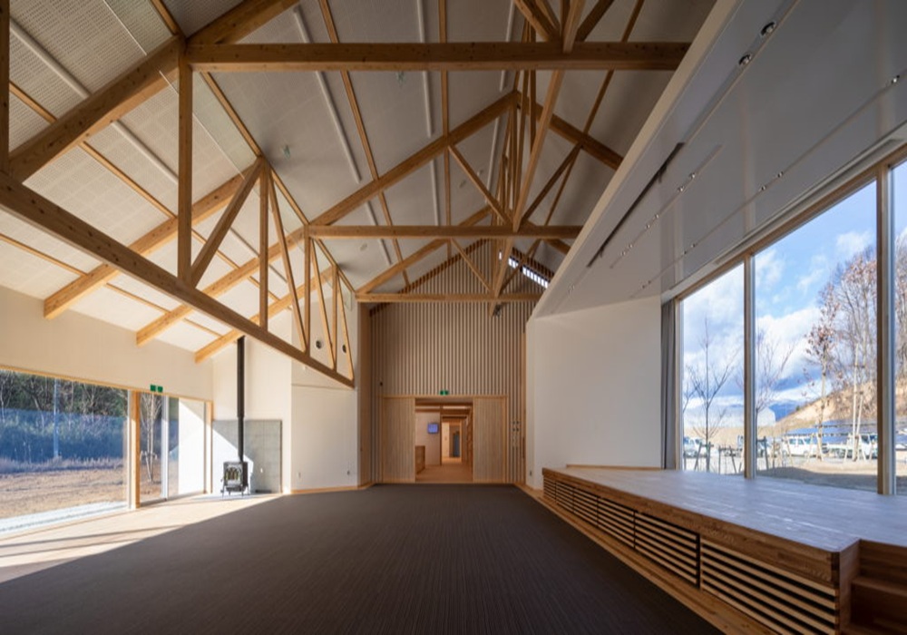 大空間の木造構造を設計施工で担い、伝統技術と木の表情を際立たせる造作が特徴です。