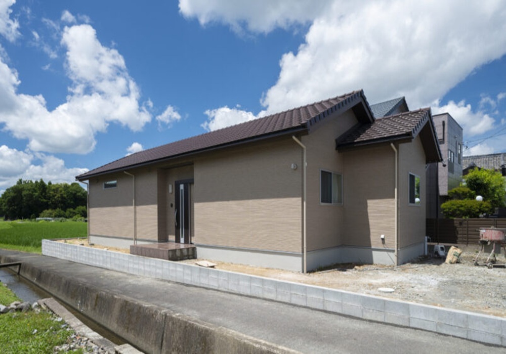 「老後も暮らしやすい平屋」は、段差を減らしたバリアフリー設計と無垢材を用いた柔らかな内部空間が特徴。