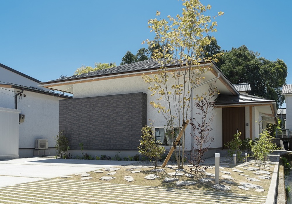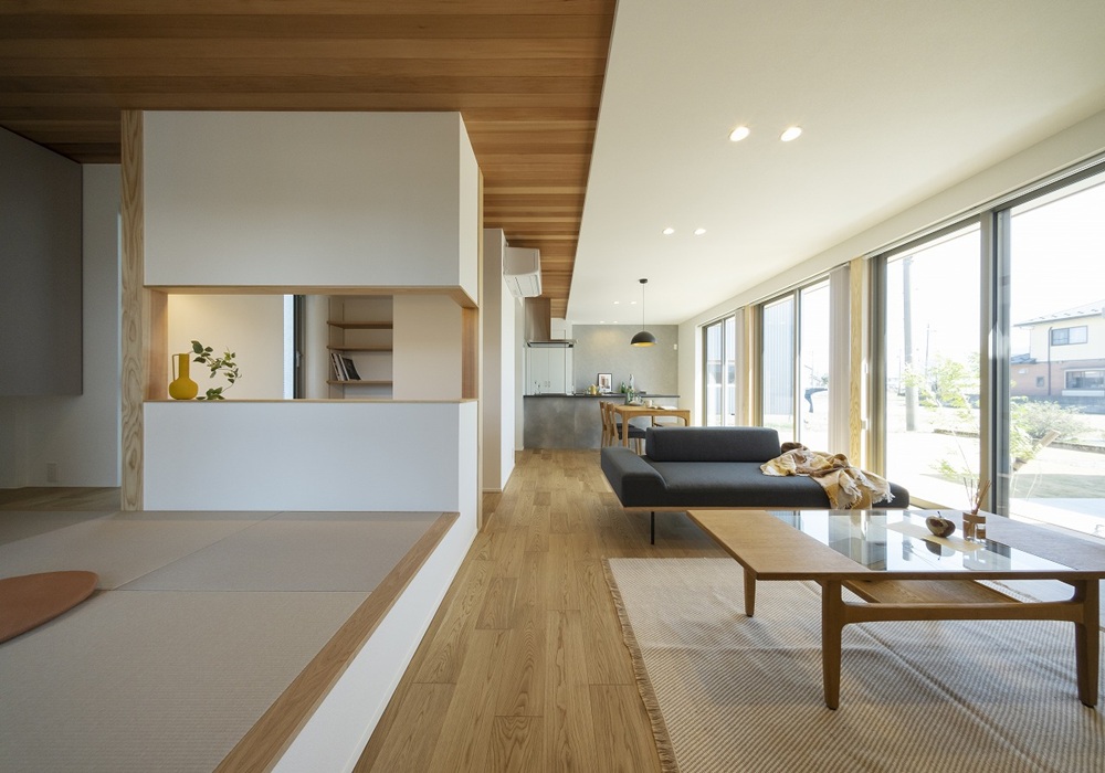 この平屋建ての住まいは、平屋特有のゆとりある空間を木造で実現。