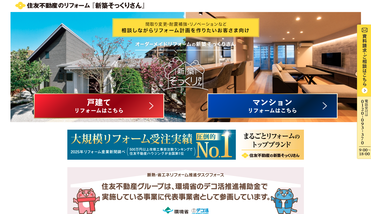 住友不動産が手がけるこちらのサービスは、家を丸ごと新築のように蘇らせる「再生力」が凄まじいです。 後から高額な請求が来る心配をなくした完全定価制を導入しており、家計を預かる身としてはこれ以上ない安心感と言えます。 今の家を壊して建て替えるより約半分のコストで済む場合も多く、思い出の詰まった柱を残しながら新築気分を味わえます。 築年数が古くなった実家をどうにかしたいと考えた時、真っ先に頼りたくなる相談役になってくれます。